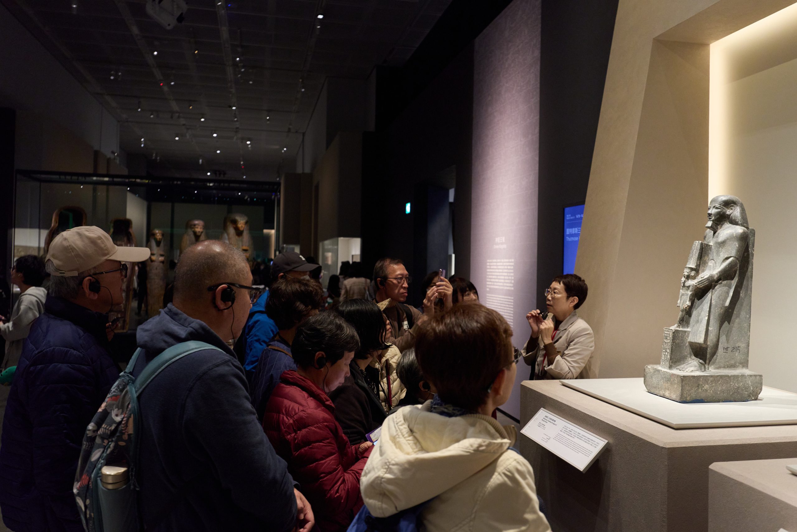 在這場跨越文明的對話中,我們以身體語言為獻禮,充滿趣味地「烹調」了幾頓豐盛的早餐呈獻給法老王。與舞者們共同創作的小段落裡,一起幻想並模仿古埃及人的日常——時而歡慶飲飽食醉,時而屏息專注捕獵。大家逐漸將自身的身體感知無限開闊,在快與慢、輕與重之間訓練著協調能力,更傳遞著彼此的歡聲笑語。